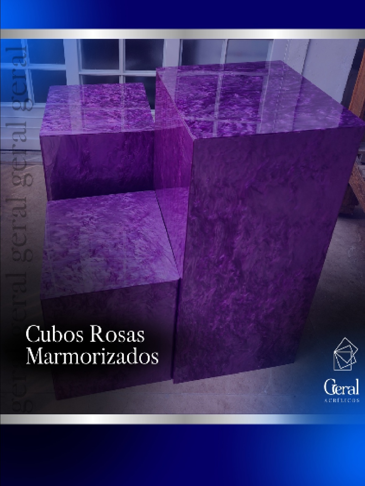 Trio de Cubos Rosa Marmorizados em 3mm ou 4mm